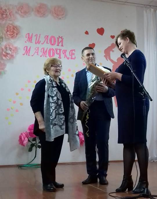 В Кутейниковском сельском Доме культуры прошло мероприятие, посвящённое Дню матери. Программу открыл необычным поздравлением Глава Кутейниковского сельского поселения Геннадий Георгиевич Яковенко, он исполнил песню «Письмо маме» многие зрители в зале плакали от такой душевной песни. Затем на сцену вышла директор МБУК Ксения Дмитриевна Шелкова, которая пригласила на сцену замечательную женщину и маму Сипливую Эмилию Ивановну, которая отмечает свой 80-летний юбилей. Она вручила ей благодарственное письмо за многолетний добросовестный труд, высокий профессиональный уровень, огромный вклад в развитие духовного и культурного творчества, активное участие в повышении уровня развития культуры сл.Кутейниково. Пожелала солнечного настроения, здоровья, мира, благополучия. Программу вели замечательные ведущие Коршунов Егор и Макарова Александра. В концерте приняли участие учащиеся 1 и 2 класса, Ангелина Лапочкина, Батов Артём, Ковтун Ксения, Григорьева Людмила, Ладвинская О.А. сборная Родионово – Несветайского района по художественной гимнастики (тренер Е.В.Артюшенко), ансамбль народной песни «Сельские зори».