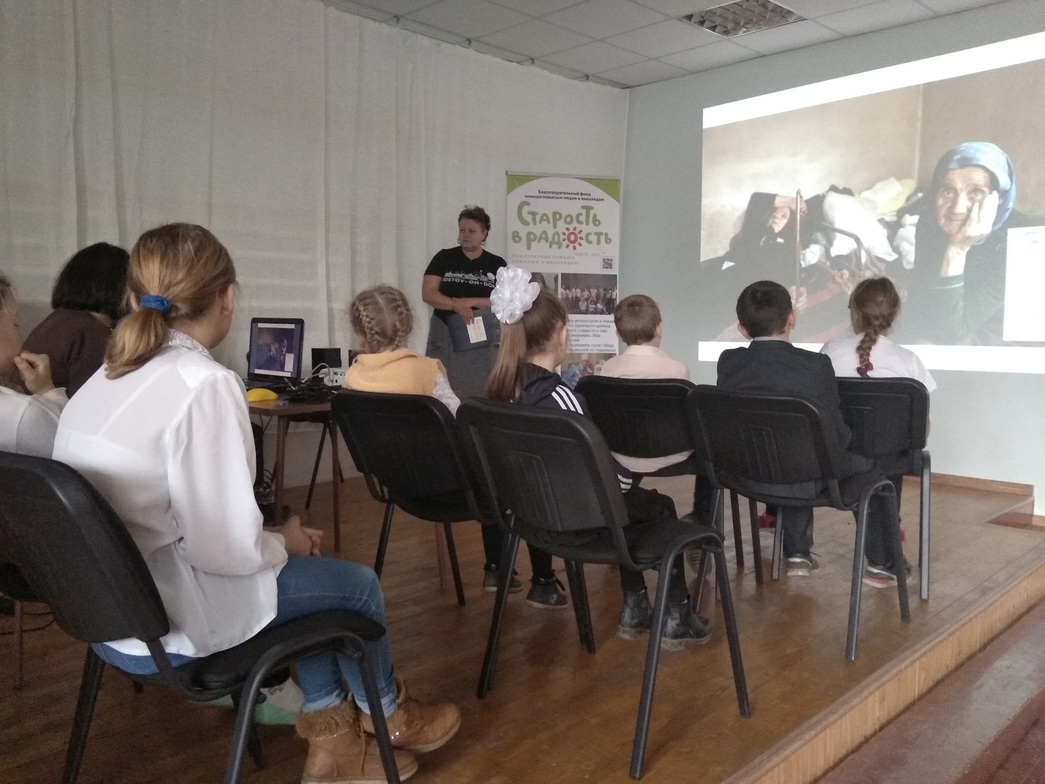 17 декабря в Каменно Бродском СК прошёл урок добра, который любезно провела для детей координатор Благотворительного Фонда «Старость в радость» по Ростовской области Шкребец Марина Николаевна. БФ «Старость в радость» оказывает помощь пожилым людям и инвалидам. На первой встрече с детьми Марина Николаевна рассказала о домах престарелых и бабушках и дедушках, живущих в них. А так же о главной нашей цели – улыбки родных! Было трогательно, когда дети рассказывали о своих бабушках и дедушках, когда пытались понять, чего может не хватать пожилым людям в домах престарелых.